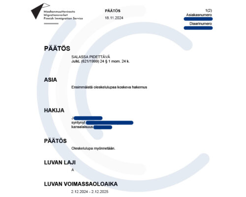 A residence permit allows you to live in Finland for purposes such as work, study, or family reunification. Most non-EU citizens need one before entering Finland.